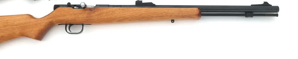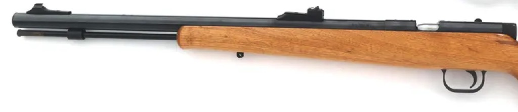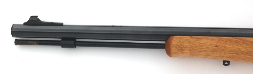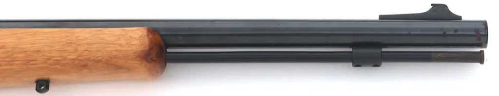 A J Sports  Legacy .50 Caliber Inline-primed Muzzleloading Rifle in nice condition that looks almost like-new. (See photos.) This bargain-priced entry-level muzzleloading rifle was made in China. It was part of a large collection of guns that I bought from an estate. My cost was quite low on this rifle, so your cost will be correspondingly low. It is configured as a modern muzzleloading deer/elk hunting rifle with inline 209 shotshell primers for priming.  Blued steel, with ramrod, thumb safety, wood stock, quick standard U.S. detachable sling swivels studs, and a soft rubber recoil pad. Short-throw bolt for priming. (The bolt and breech plug can be removed, for cleaning.) Equipped with iron sights. The barrel length is 22.5″. Serial Number: 000483X.  Stock is in excellent condition with just a few very light handling marks.  Bore is nice, but shows some use. Uses standard size #11 percussion caps.  This rifle is a good length for deer or elk hunting. With heavy conical bullets, it can take a mule deer, and even elk! (ERM-052)