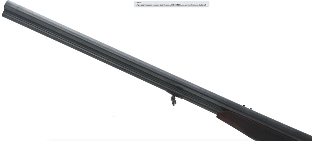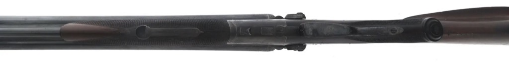 A scarce Wilhelm Brenneke 16 gauge / 8×53 mm Rimmed caliber drilling (three-barrel) rifle made in 1898. Improved Modified choke left shotgun barrel, fixed Modified choke right shotgun barrel. Barrel rib is roll-marked and gold-inlayed: “Wilh. Brenneke Gewehrfabrik Leitzig & Suhl”. Engraved receiver. Checkered wood stock with raised cheek rest. Multiple triggers. Typical European sling mounts, with a barrel-mounted swivel in the front. A 5-cartridge compartment in the top of the stock holds five rounds of 8×53 mm Rimmed straight-case ammunition. Serial Number: 19X (circa mid-1898.) 27″ barrels. Bore condition: – Shotgun: Light wear with moderate pitting in the left barrel. Rifle: Moderate wear with good rifling. Receiver: Light wear. Stock: Light wear. The dark German walnut wood has some nice grain. Has attractive original factory engraving on the receiver. Mechanically excellent — the action has a nice tight lock-up. Given this gun’s early vintage, we presume that the shotgun chamber depth is 2-1/2″ and the rifle chambering is for a 8×53 mm Rimmed straight-case. (There are three fired cases in the buttstock cartridge compartment available to match.) The Brenneke company was established in 1895, and is still operating. It became world-famous for its innovative and quite effective rifled shotgun slug shells. This combination gun shows amazing Old World craftsmanship! (See photos.) As a pre-1899 antique, no FFL is required. (NHAS-857)